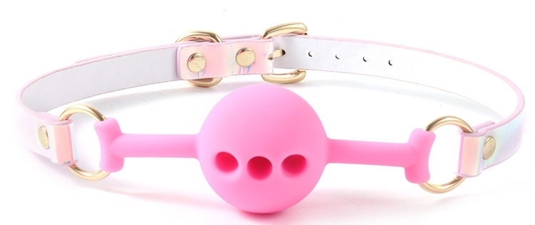 Bâillon-boule rose avec des trous pour un usage plus confortable.Boule de 4 cm de largeur. En silicone Sangles ajustables (simili) de 50 à 58 cm.