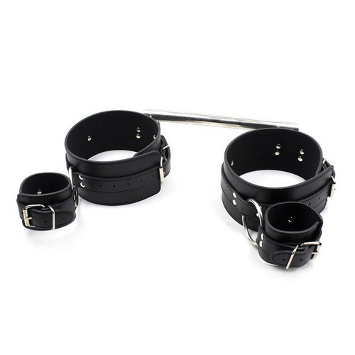 Ce kit d’attaches pour Plan SM est composé:- d’une barre en métal de 25cm – de 2 menottes de poignets avec fermeture métallique – de 2 menottes de jambes. Les deux paires se fixent l’une à l’autre pour avoir les poignets proches des jambes et ainsi obtenir une position soumise.Cet accessoire sm du sex shop gay est original et PRATIQUE !