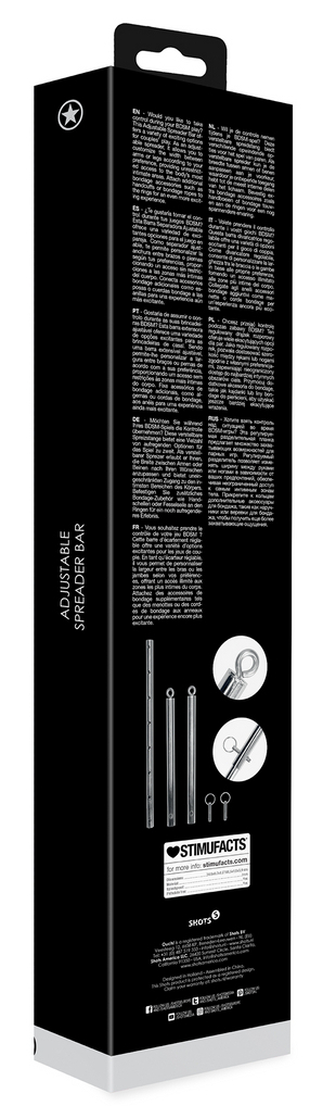 Barre d’attaches ajustable qui vous aidera à réaliser vos plus grands fantasmes. Elle se compose de 3 barres en métal à assembler. Deux des barres font 30.5 cm et sont munies d’un anneau. L’autre mesure 39 cm.Longueur totale de 40 cm. Deux crochets sont fournis pour les mettre à la distance souhaitée.