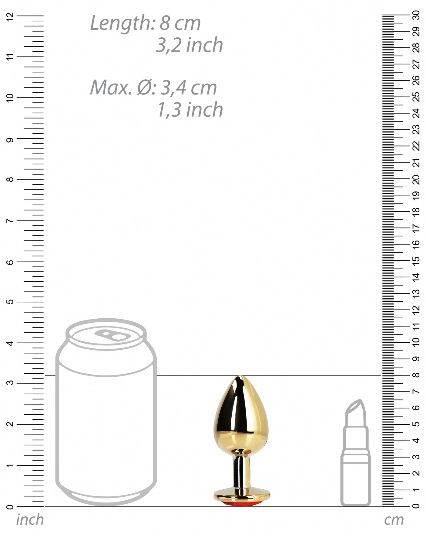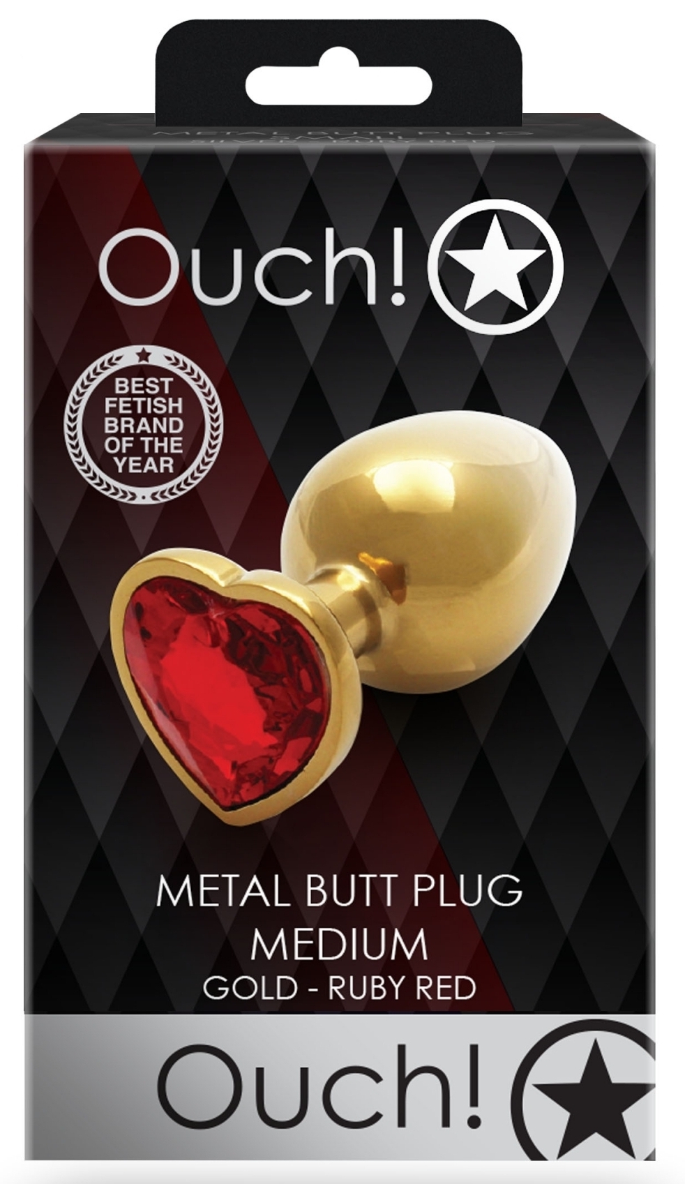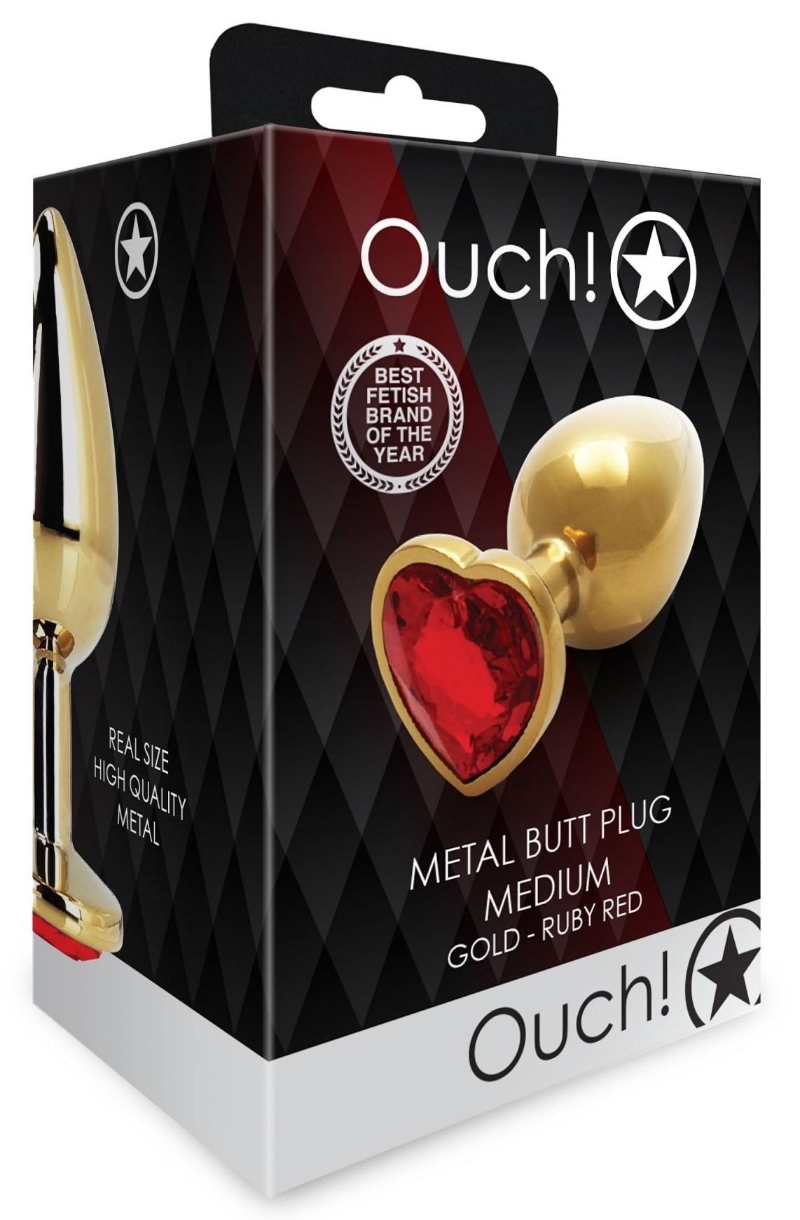 Le bijou anal Heart Gem est ici dans sa version M avec la couleur doré-rouge.La surface est dorée et le bijou en forme de coeur est rouge. La longueur insérable est de 7 cm.La largeur maximale est de 3.3 cm. Le poids est de 86 grammes. En aluminium
