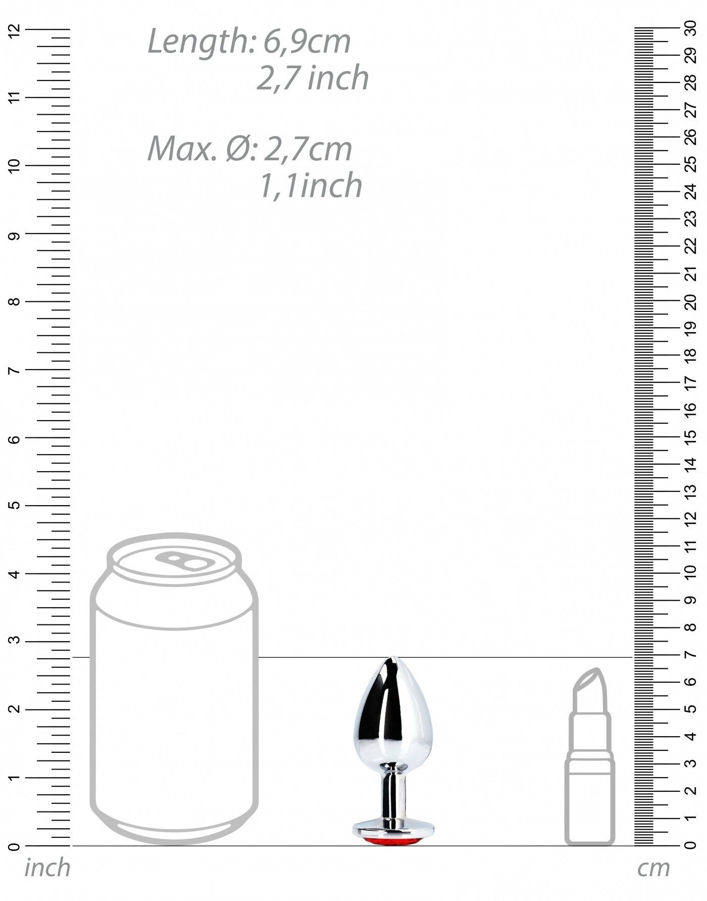 Le bijou anal Round Gem S est un sextoy argenté avec le bijou rouge en forme de rond. Il a une longueur insérable de 6 cm et une largeur de 2.6 cm. Poids de 50 grammes. En aluminium