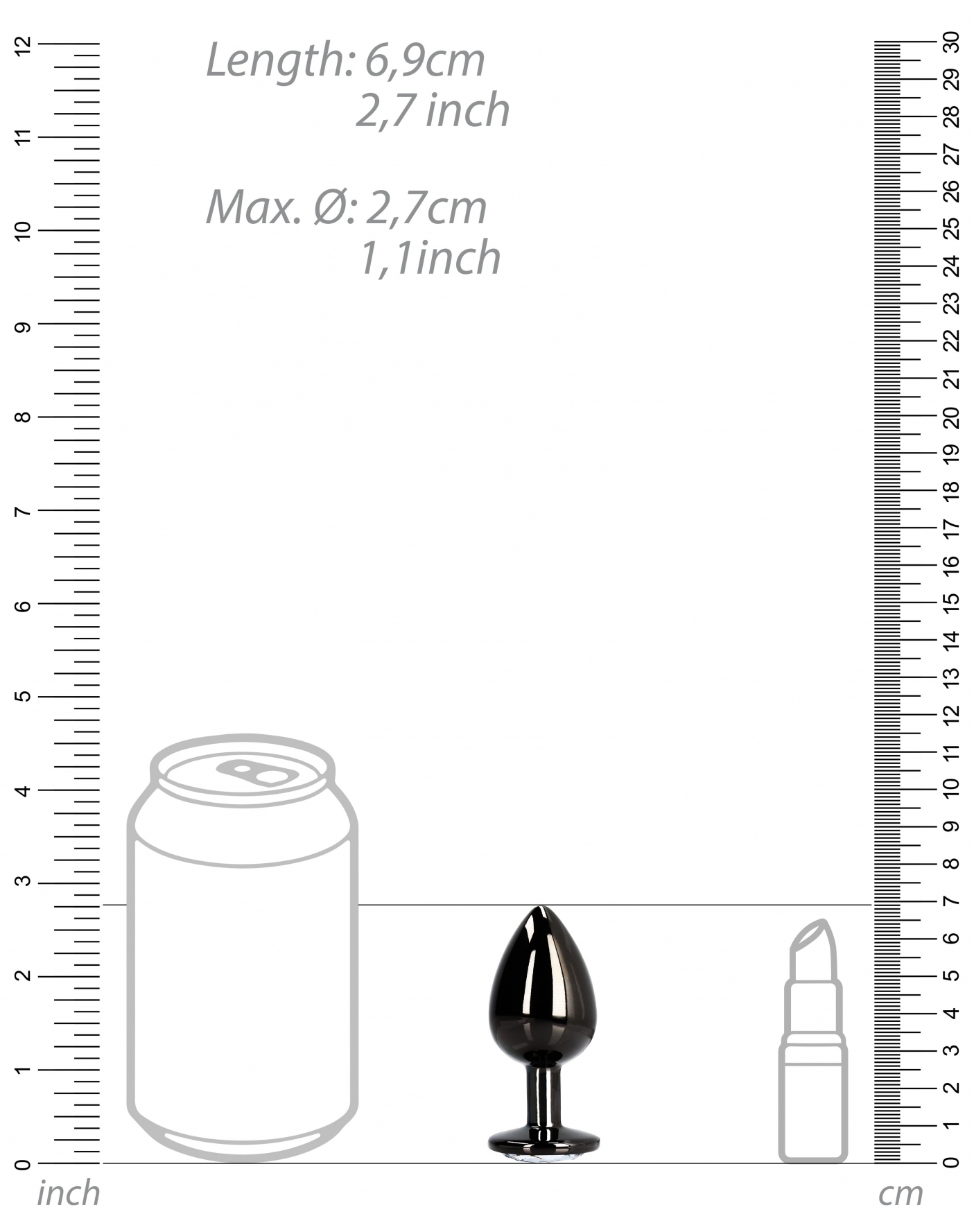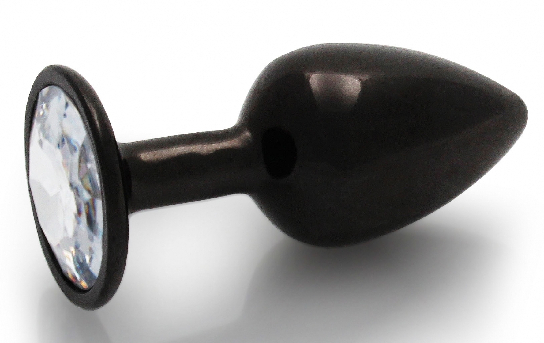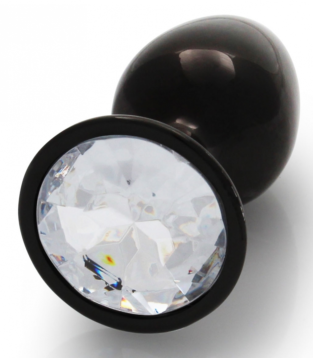 Le bijou anal Round Gem S est ici dans sa version noire avec le bijou rond et transparent. La longueur insérable est de 6 cm. La largeur est de 2.6 cm. Poids de 50 grammes. En aluminium