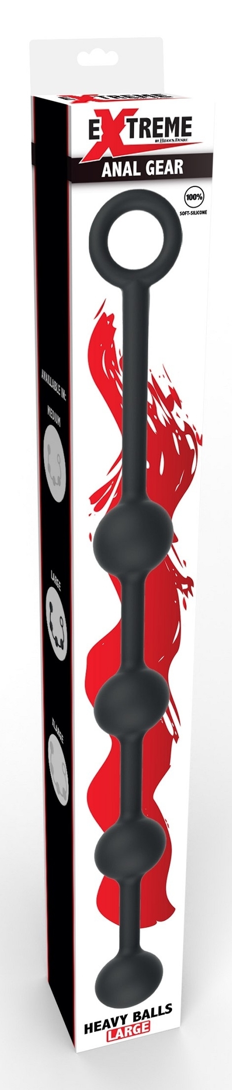 Boules avec un diamètre de 4 cm. Longueur insérable de 36 cm.Structure souple et anneau à l’extrémité. En silicone
