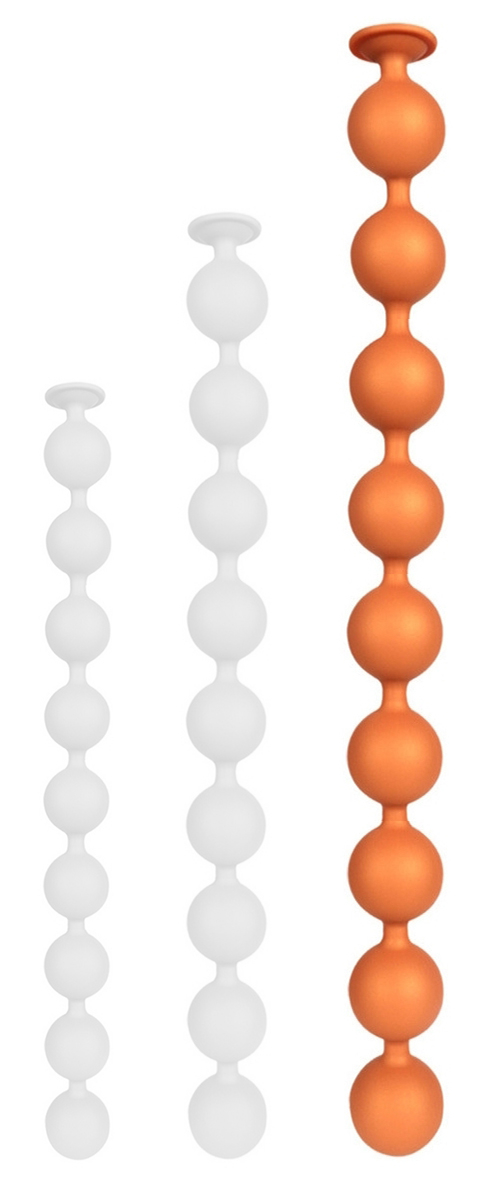 Boules orange avec une longueur insérable de 65 cm et une largeur de 5.5 cm.Avec une structure souple et une surface lisse. En silicone.