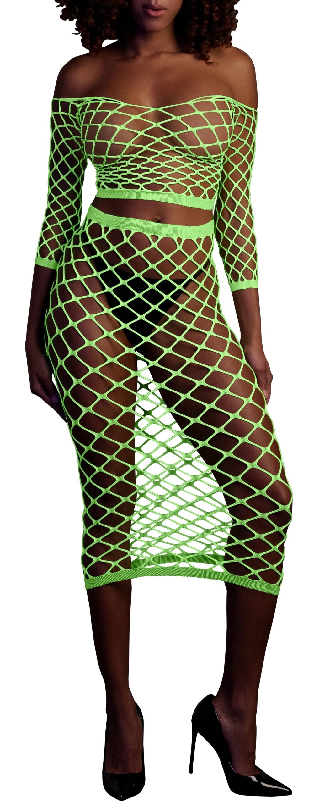 Bustier et Robe Filet Épaules dénudées Vert Fluo
