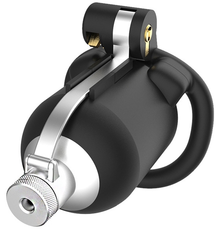 Cage de chasteté rigide, avec pics, et tige d’urètre percée de 6 mm de diamètre pour 5.5 cm de long. Longueur insérable de 6 cm par 3 cm de large.  4 anneaux courbés d’un diamètre de 4.2 à 5.2 cm En plastique ABS, avec un cadenas à clé et cadenas numérotés.