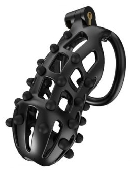 Longueur intérieure de 12 cm et diamètre de 4 cm.Avec une surface avec des picots amovibles.Serrure intégrée et anneaux de maintient.En plastique résine.