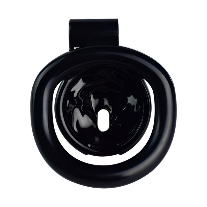 Cage de chasteté rigide, de couleur noire, percée, en forme de rose ouverte. Longueur insérable de 3.5 cm et diamètre de 3.5 cm.4 anneaux incurvés de 42, 45, 48 et 52 mm.En résine noire, percée.