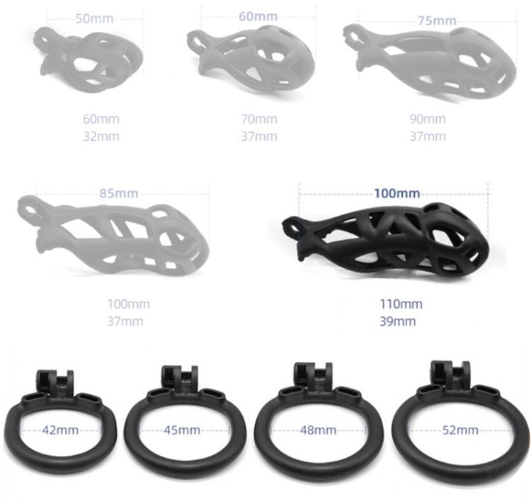 Cette cage de chasteté est conçue avec une forme arrondie qui épouse bien les formes du pénis. Elle permet de limiter l’érection et de rendre le moment de soumission plus intense.La longueur est de 10cm.La largeur intérieure est de 4cm. Avec une structure rigide. 4 anneaux de 42, 45, 48 et 52mm de diamètre.Fermeture par clé. En plastique ABS