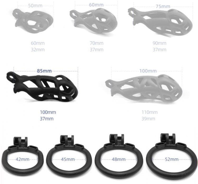 Cette cage de chasteté est solide et permet d’enfermer le pénis. Elle limite les érections et assure des jeux de soumission plus intenses.Elle se compose de : une longueur de 8.5cm une largeur intérieure de 3.7cm les 4 anneaux de fixation de 42mm, 45mm, 48mm et 52mm. Avec une fermeture par clé. En plastique ABS