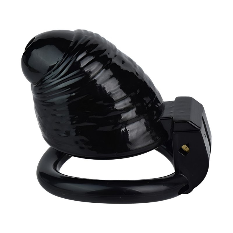 Accessoire pour la chasteté avec une longueur intérieure de 7 cm et une largeur intérieure de 3.3 cm.Les contours sont réalistes. Avec 4 anneaux de 40, 43, 46 et 50 mm de diamètre. Elle est fabriquée en résine ABS.