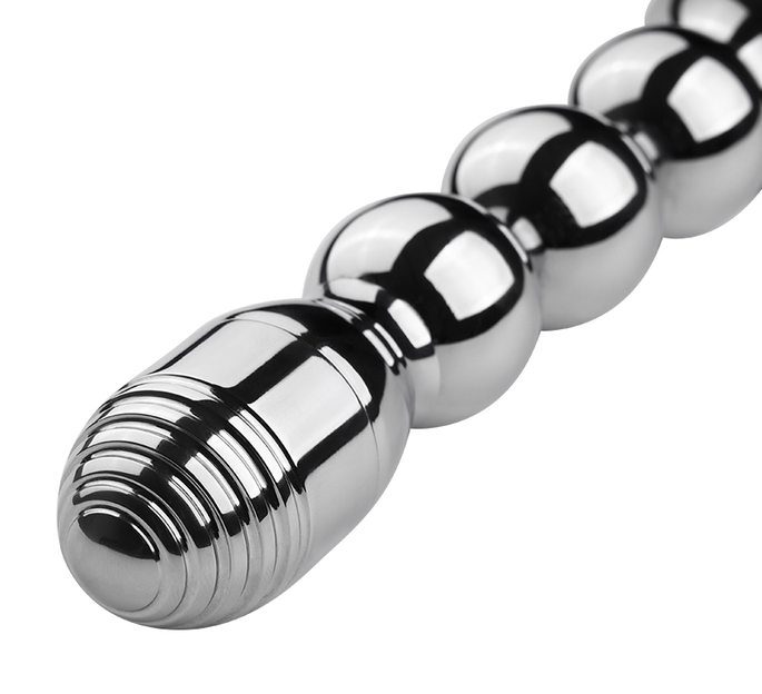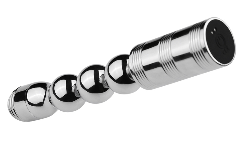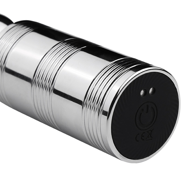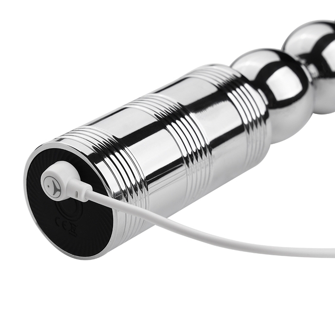 Chapelet vibrant avec une structure flexible. Longueur insérable de 15 cm. Largeur de 3 cm. Avec 10 modes de vibration. En métal chroméRecharge USB