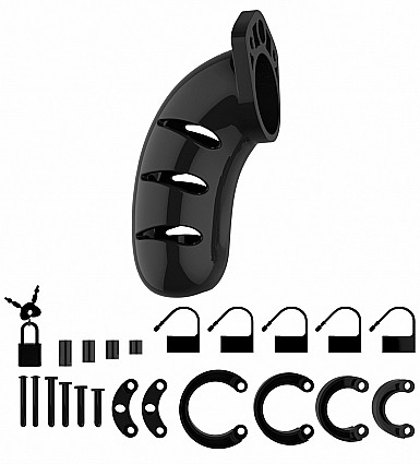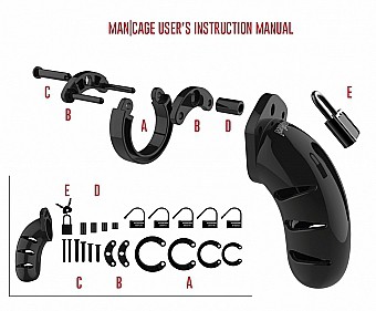 La cage de chasteté modèle 03 de la marque ManCage est un accessoire de jeux SM qui permet au partenaire de ne pas être en érection.Il est idéal pour reprendre le dessus sur le partenaire.. La forme est courbée.Elle est livrée avec 4 anneaux de fixation avec des diamètres allant de 45 à 60mm.Avec cadenas
