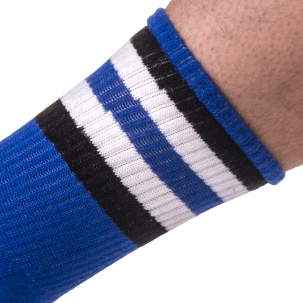 chaussettes half fetish stripes bleu noir blanc