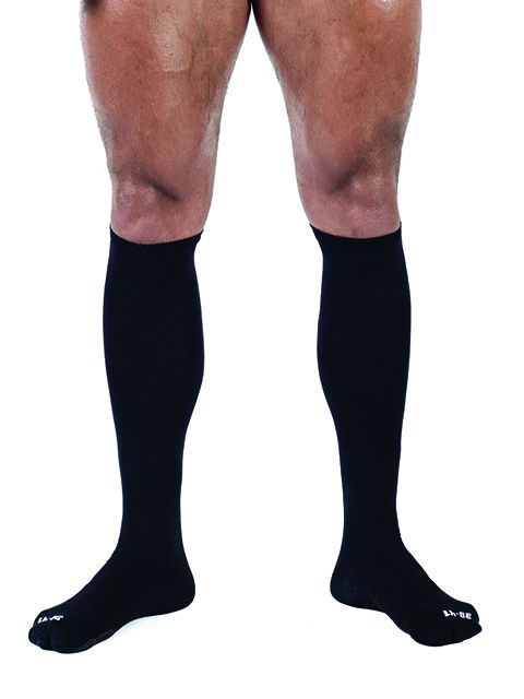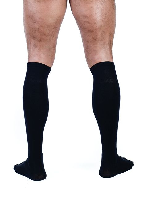 Chaussettes hautes noires de la marque Mister B.Elles donnent un style sportif et fétiche pour être looké lors des moments Hot. Tissu léger, confortable et résistant