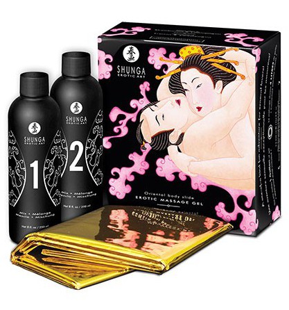 Le coffret de massage que nous vous présentons fait partie de la marque Shunga.Très simple d’utilisation, il permet de créer soi-même 4 litres de gelée de massage au parfum enivrant de Vin Pétillant à la Fraise que vous pourrez ensuite appliquer directement sur la peau de votre partenaire.Grâce à sa couverture étanche, vous allez pouvoir réaliser de sensuels Corps à corps. Excitations garanties !