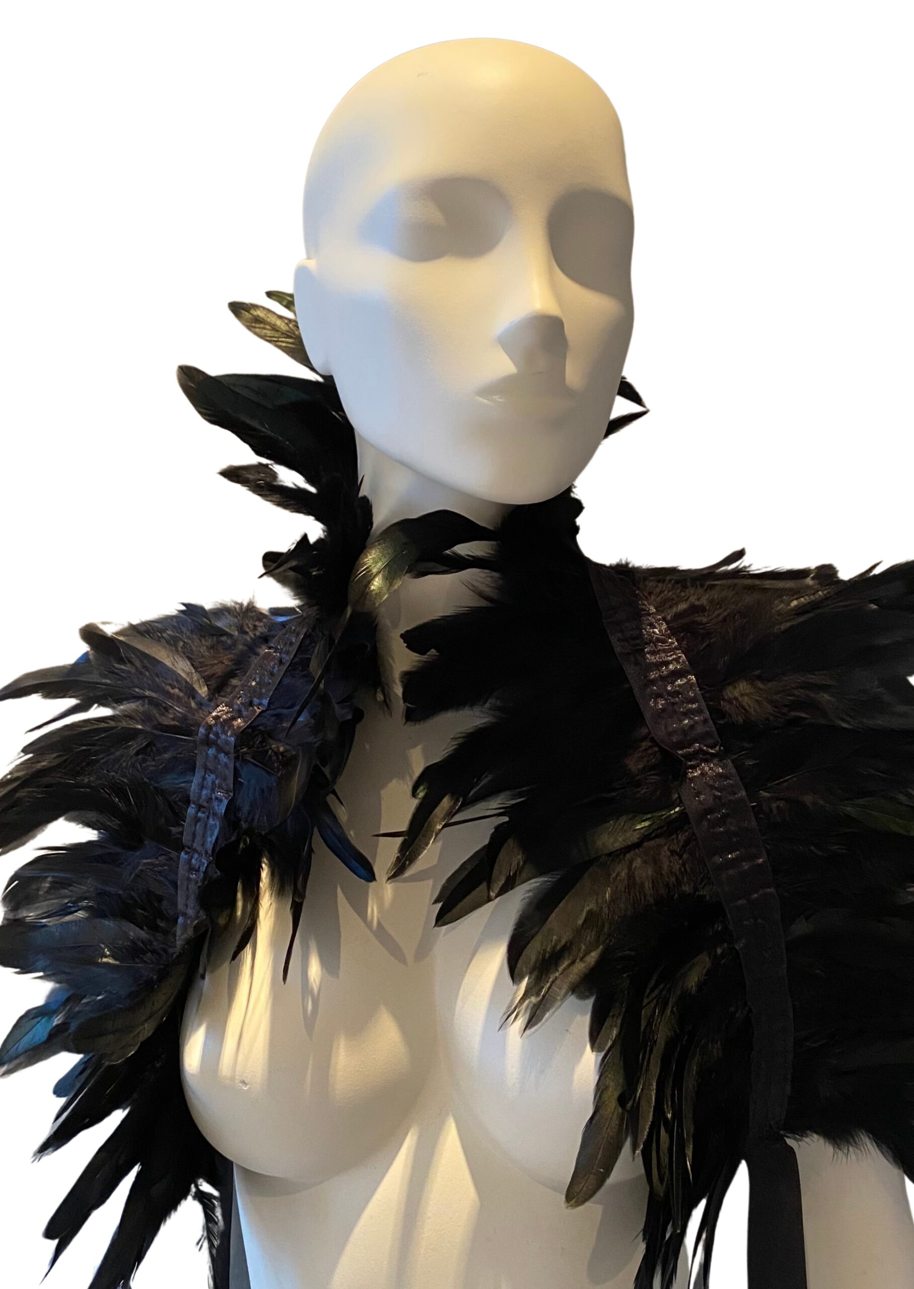 Ce couvre-épaules est composé de fausses plumes noires et donne un look sexy et élégant.Pour des moments encore plus coquins. Maintien avec bandes en tissu satin. Cache-tétons non inclus