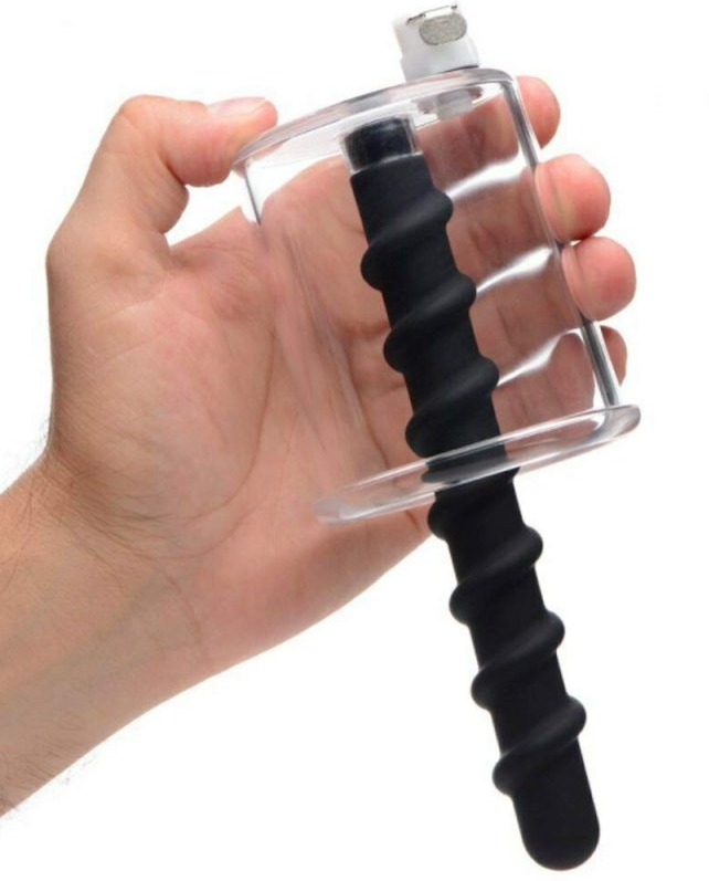 Ce cylindre pour rose anale est composé d’une longueur de 9 cm et un diamètre intérieur de 55 mm. L’insert en silicone mesure 15 cm de longueur insérable et 2.3 cm de largeur (forme torsadée). Avec une valve universelle pour brancher une pompe. Matière plastique ABS
