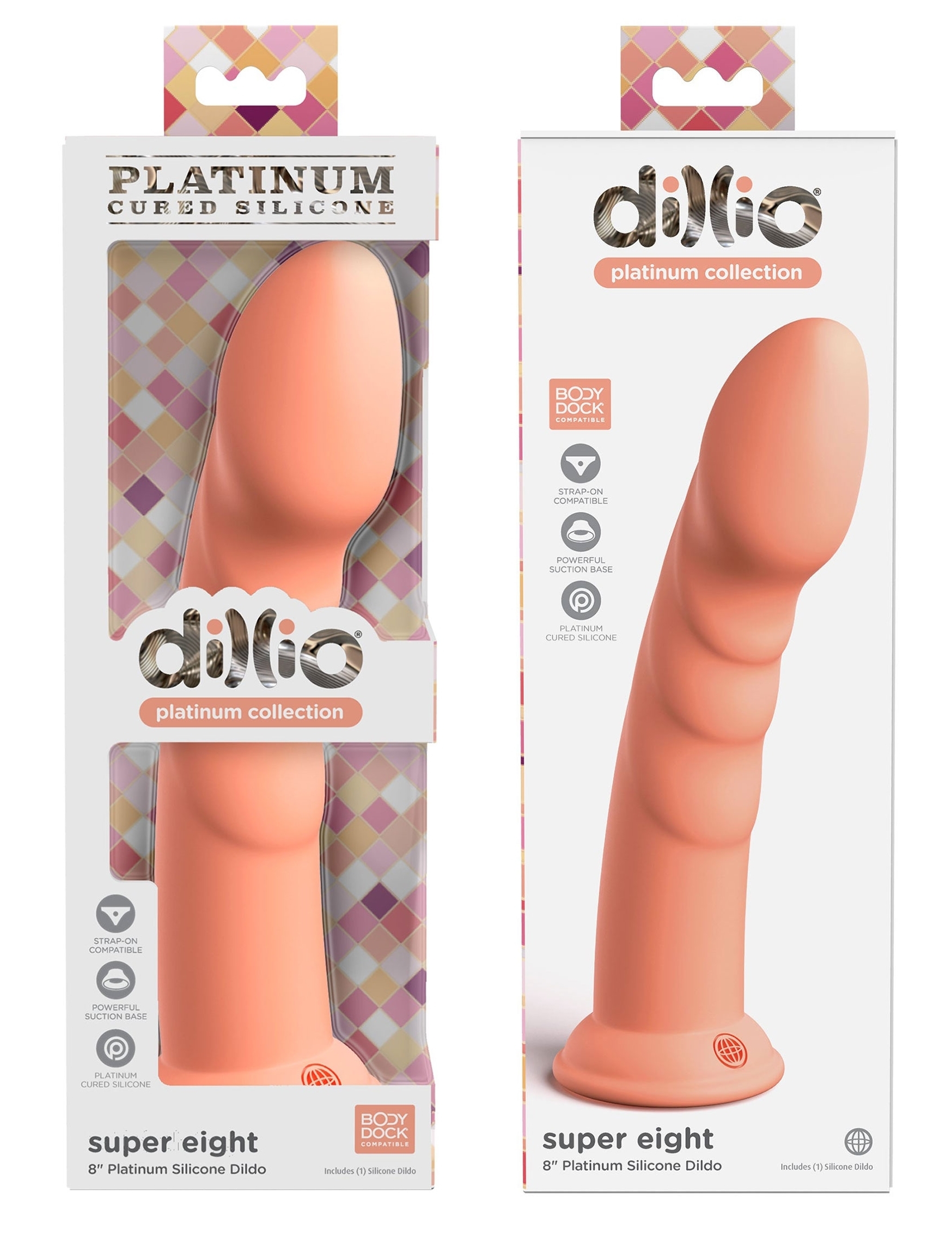 Le dildo Super Eight de la gamme Dillio est composé d’une longueur insérable de 20cm et d’une largeur maximale de 4.5cm. Avec un gland épais et une surface ondulée ensuite. Avec une base ventouse. En silicone