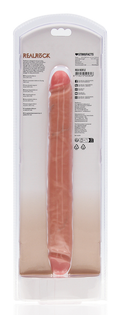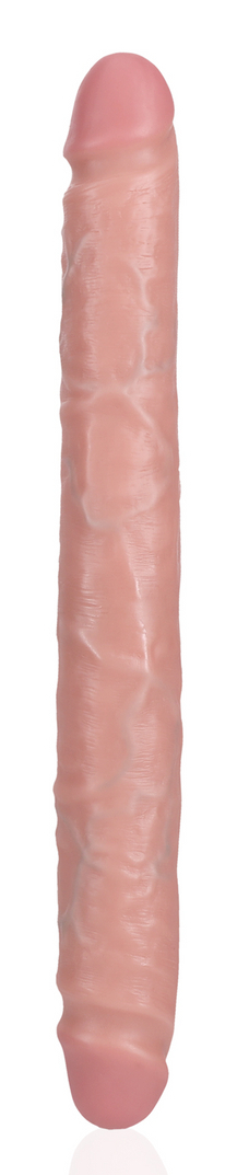 Double Gode souple pour une double pénétration Glands décalottés et surface veinée Longueur insérable totale 30.5 cm et largeur maximale 3.5 cm Double gode en PVC