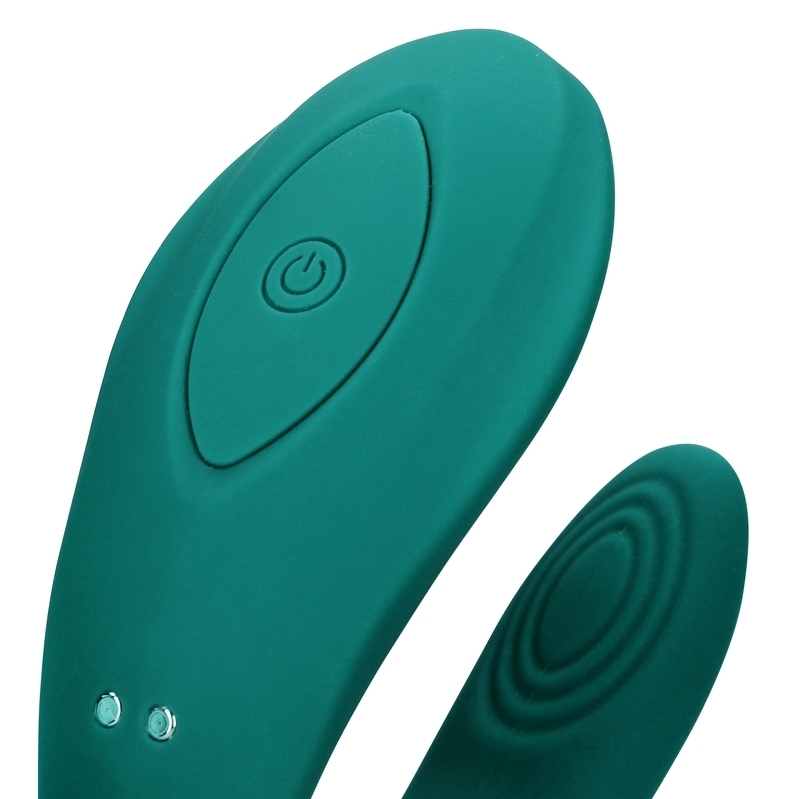 Double stimulateur : point G et clitoris. 10 modes de vibrations. Télécommande à pile (AAA non fournie) Partie insérable pour le point G Partie large pour le clitoris Étanche Dimensions : Longueur insérable de 10 cm. Largeur de 2.2 cm pour la partie insérable du point G. En silicone.