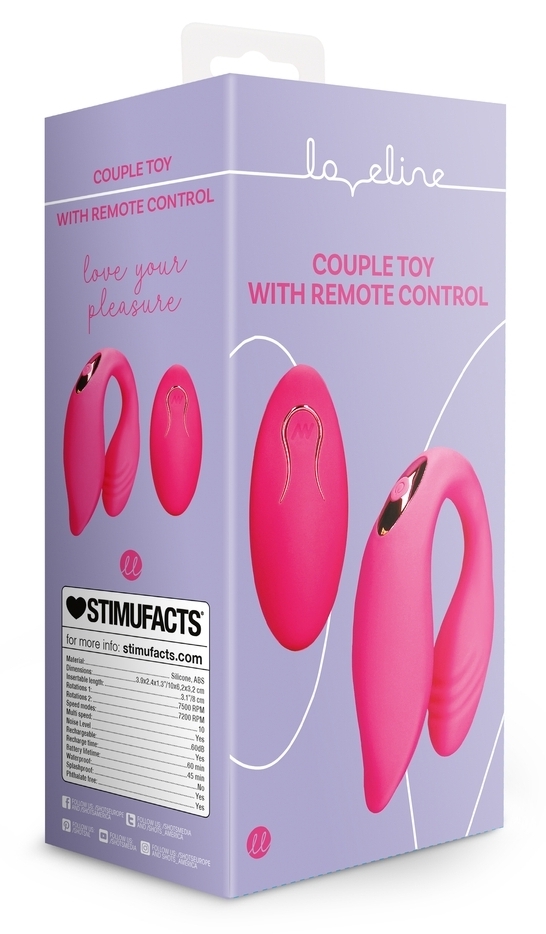 Double stimulateur, clitoridien et vaginal. 10 modes de vibrations. Recharge USB Télécommande à pile AAA (non fournie) Dimensions : Longueur insérable de 8 cm. Largeur maximale de 3.3 cm. En silicone