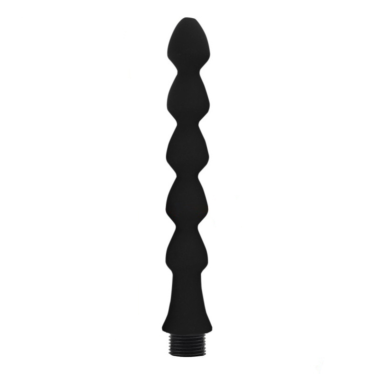 Embout de 19 cm de longueur insérable avec une largeur maximale de 2.8 cm.Avec des « boules » successives pour une insertion douce et plus excitante.Il se fixe sur le tuyau de douche. En silicone.