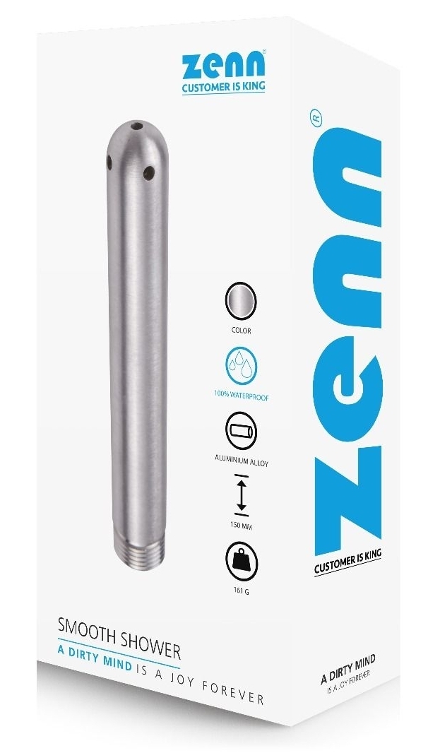 Cet embout de Lavement SMOOTH SHOWER a été conçu avec :  une longueur d’insertion de 14 cm une largeur de 2.1 cm 5 trous surface lisse adaptable au tuyau de douche En aluminium