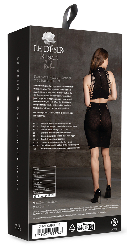 Ensemble 2 pièces, de taille XS à XL, comprenant : un crop-top avec tour de couune jupe crayon au niveau des genouxComposition : 92% Nylon, 8% Élasthanne