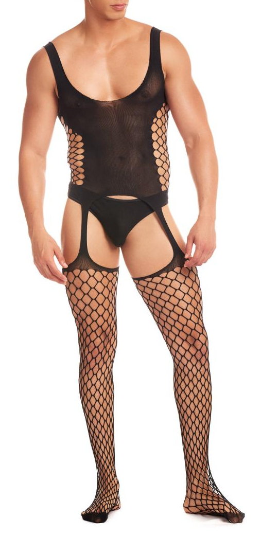 Haut débardeur et bas résille à grosses mailles.Avec un string opaque. Composition : 93% Polyamide, 7% Élasthanne