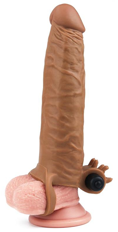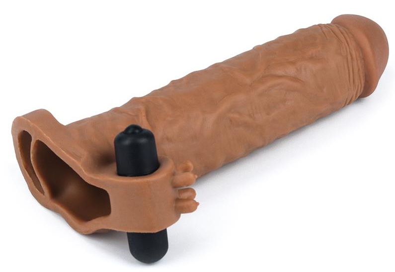 Cet étui pénien de la marque LoveToy est conçu avec : une forme réaliste de 19 cm de long et de 4.5 cm de large un système de vibration qui vient stimuler le périnée l’anneau pour le positionnement et le maintien. Couleur marron.