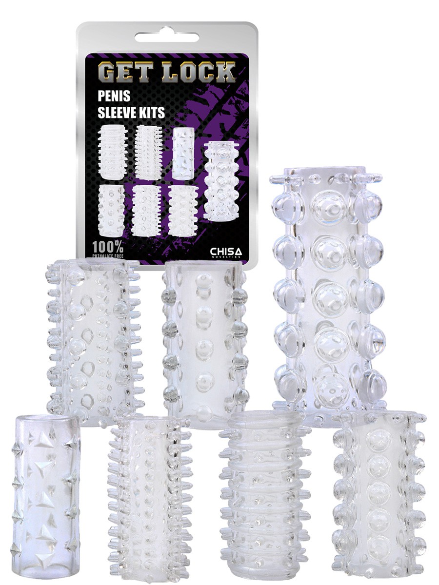 Ce produit est composé de 7 gaines à pénis avec un relif différent.Il est idéal pour donner plus de sensations au partenaire. Le relief permet alors que le plasisir ressenti ne soit pas le même selon la gaine choisie.