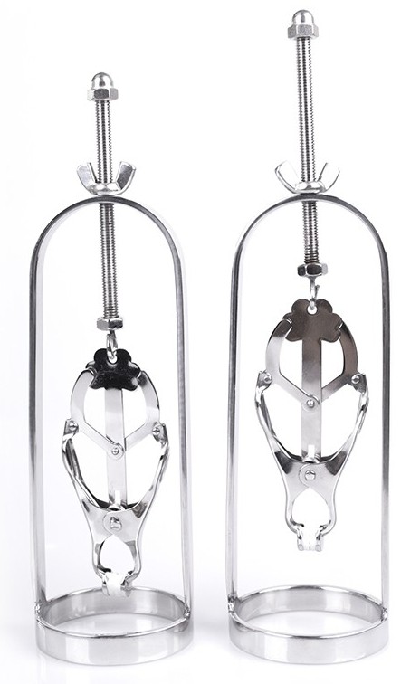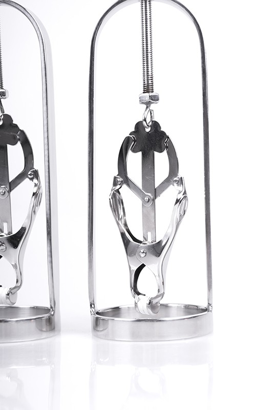 Cet accessoire de la marque Kiotos est un extenseur pour les tétons. Il permet de les tirer jusqu’à 8cm grâce à la vis et au squelette en métal.Idéal pour les moments hard. La pince serre fort.Réalisé en acier inox. Dimensions:Longueur totale 23cmLongueur du « squelette métal » 16cmPince 8cm