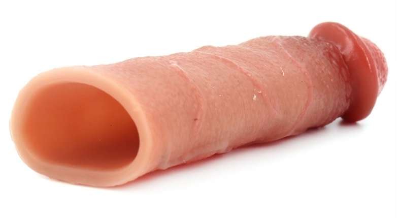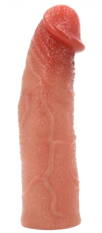 Cette gaine de pénis est conçue avec une forme réaliste.La longueur est de 17cm. La largeur est de 4cm. Avec une surface texturée et veinée.Le gland est décalotté. Dimensions intérieures : 16 x 4cm. En silicone