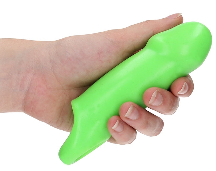 Cette gaine de pénis est phosphorescente et brille dans le noir.Elle est composée d’une longueur insérable de 12cm et d’une largeur de 4.5cm.Avec une surface lisse. Dimensions intérieures : 13 x 2cm. En matière TPE souple