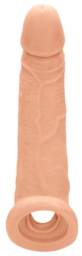 La gaine de pénis Realrock est idéale pour donner des formes plus avantageuses au sexe.Elle mesure 17cm de longueur avec une largeur de 4.5cm. La surface est veinée.Elle se place sur le sexe et se maintient autour des bourses (ouvertures 25mm étirable). Insertion du sexe à l’intérieur sur environ 14cm. En matière souple TPE Longueur totale de 22cm.