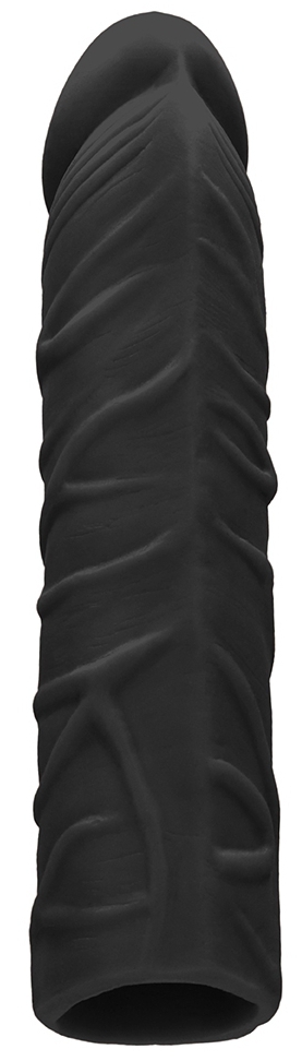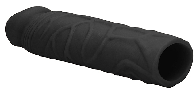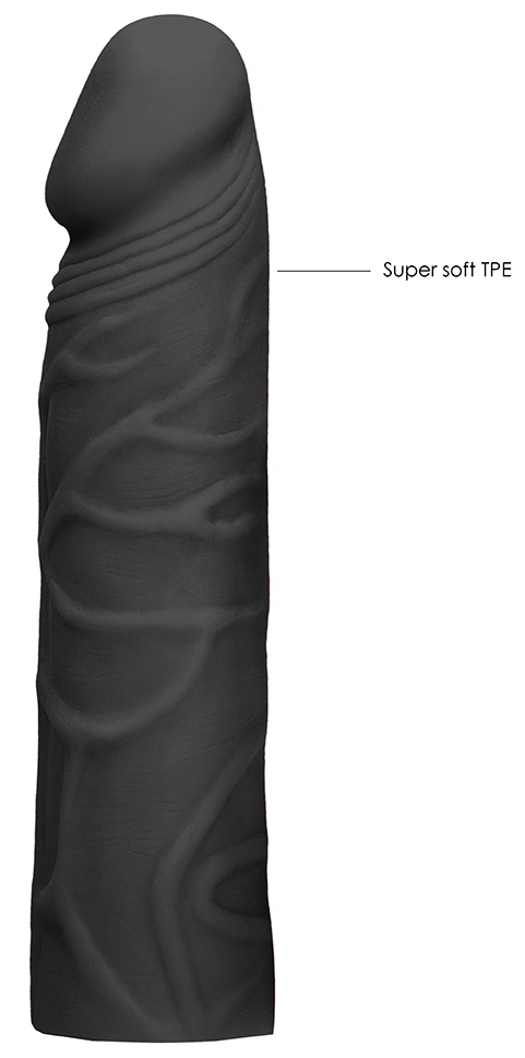 Cette gaine de pénis noire est conçue avec une longueur de 17cm et une largeur de 4cm. Avec un gland décalotté et une surface veinée.Elle permet de rendre le sexe plus excitant et volumineux.Insertion sur environ 14cm. Fabriquée en matière TPE souple