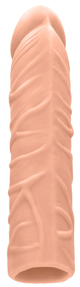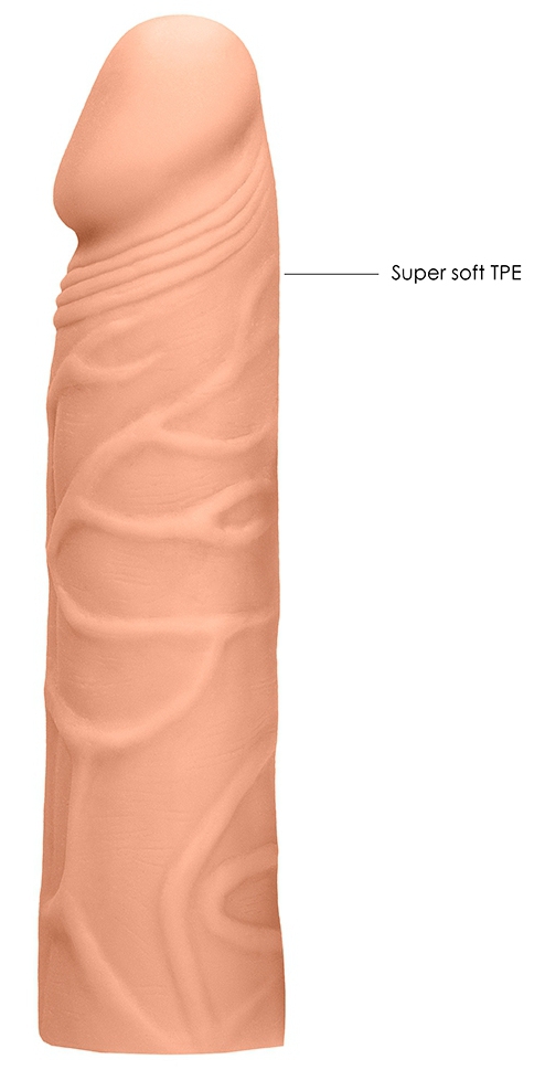 Cette gaine de pénis Realrock est conçue avec un gland décalotté et une surface veinée. Elle se place sur le sexe et lui donne des dimensions plus avantageuses.La longueur est de 17cm. La largeur est de 4cm. Insertion à l’intérieur sur 14cm. En matière souple TPE