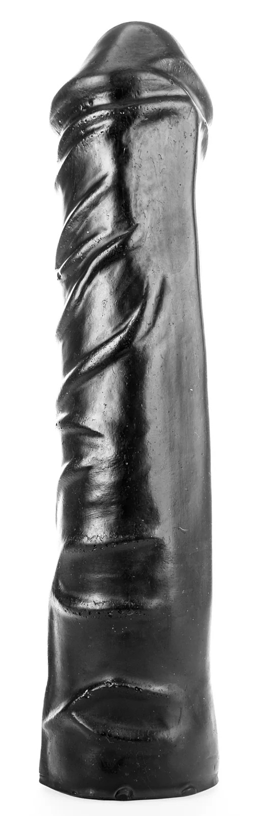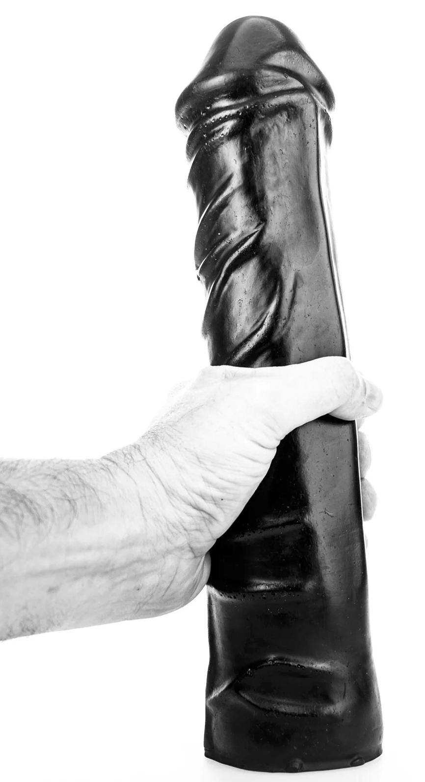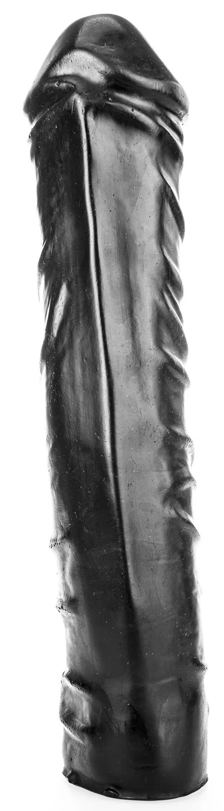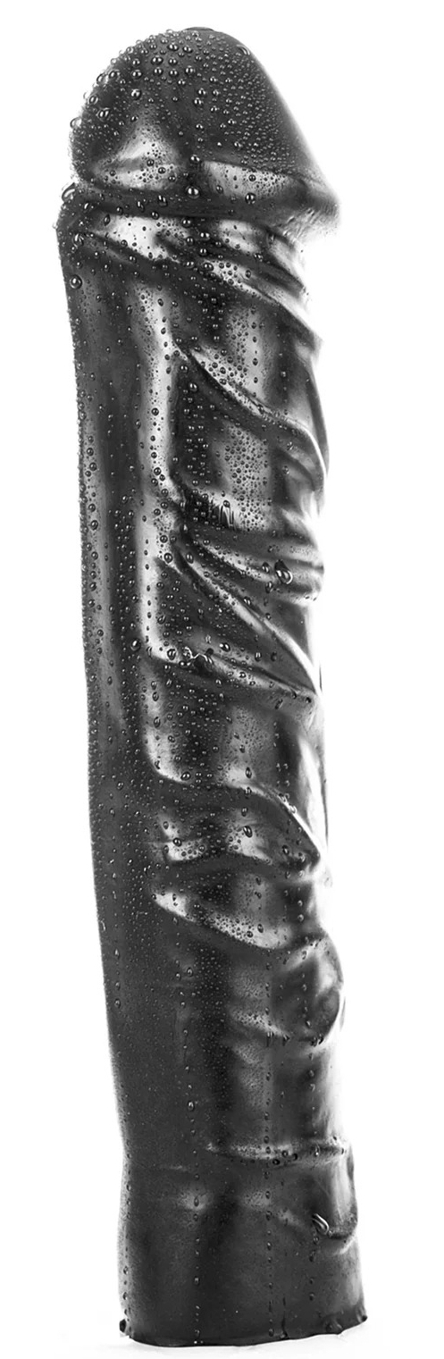 Gode noir de 29 cm de longueur insérable et surface veinée.Largeur maximale de 7.5 cm au niveau du gland.Largeur moyenne de 6.5 cm. Attention : Pas de butée. Ne pas insérer en entier. En PVC
