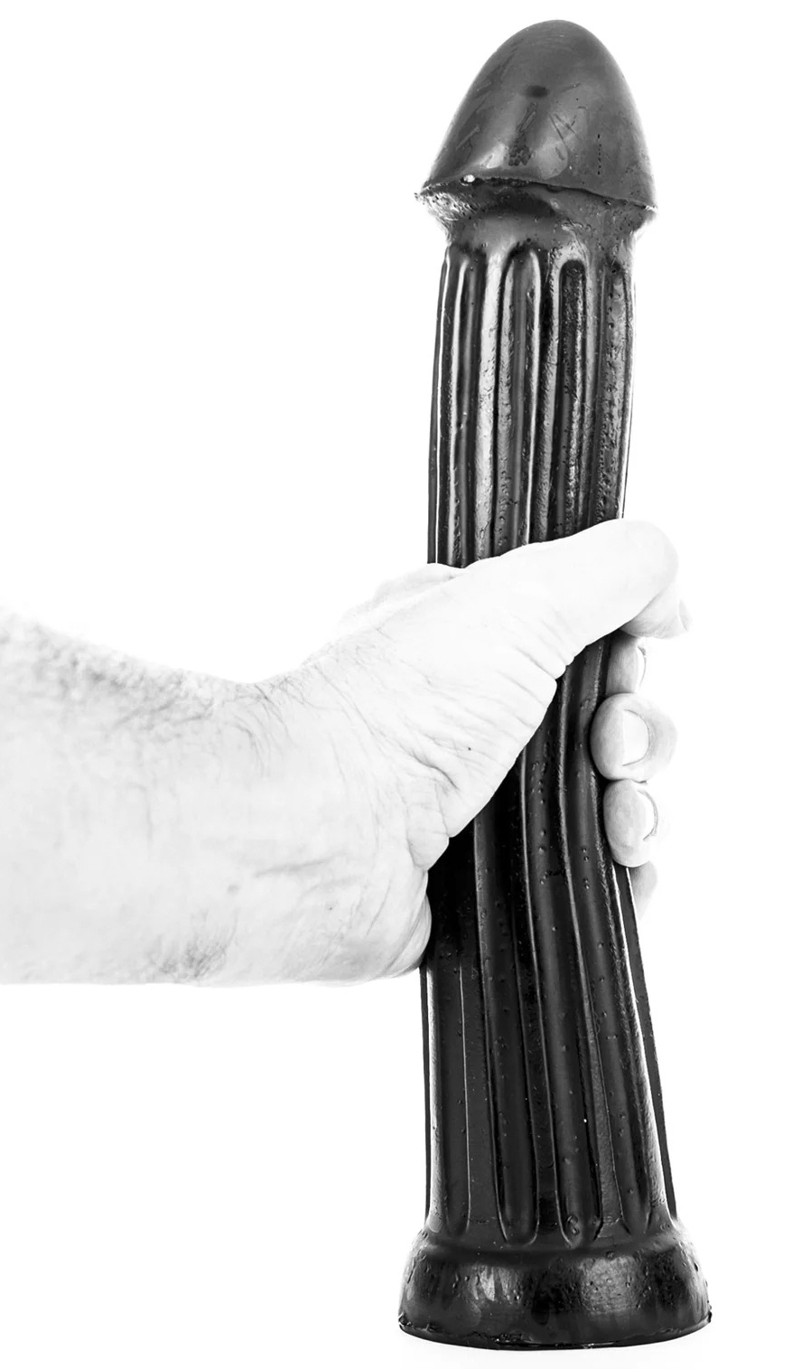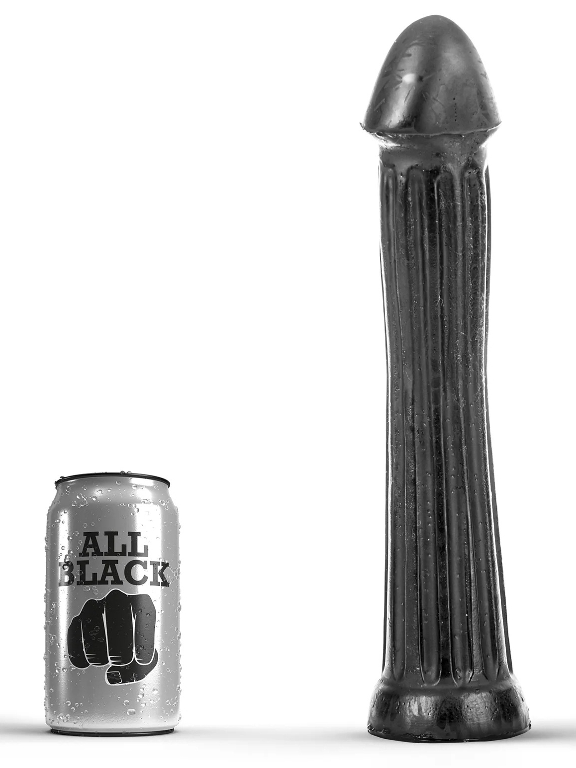 Le gode AB30 Donger de la marque All Black est composé d’une forme droite avec une longueur insérable de 29 cm.Le gland est large de 6 cm. La largeur va ensuite de 5 à 5.5 cm. Avec une surface nervurée. En PVC