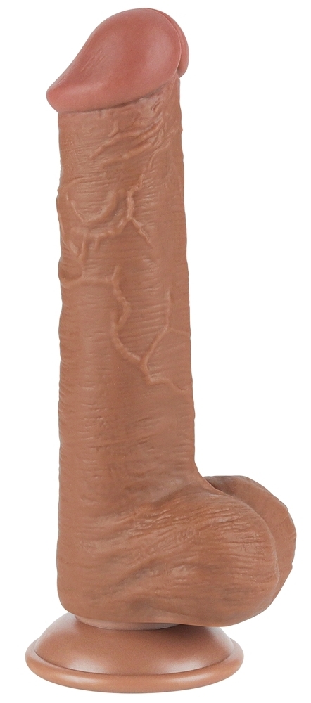 Gode avec Bourses Sliding Skin 15 x 4.5cm Marron