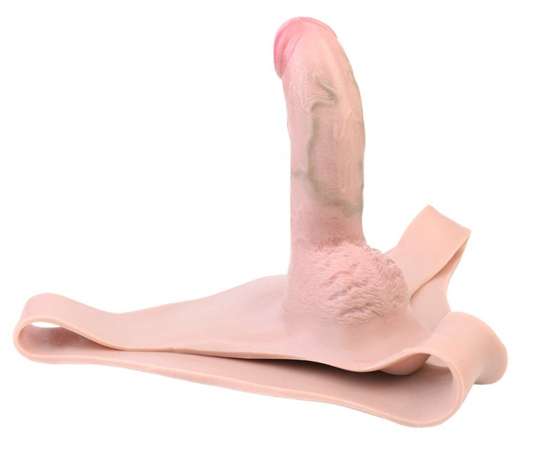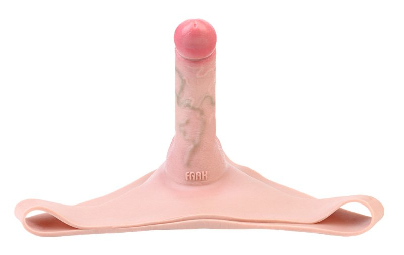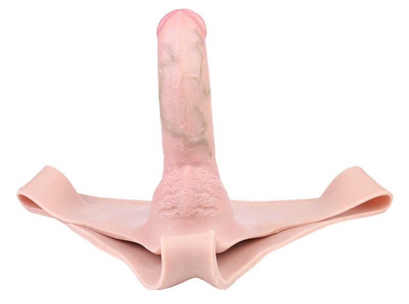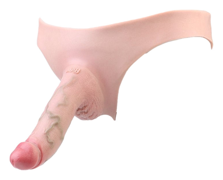 Gode ceinture creux, sous forme de sous-vêtement.Longueur de la gaine de 11 cm et largeur de 2.6 cm.Longueur insérable de 14 cm et largeur de 4.5 cm.En silicone.