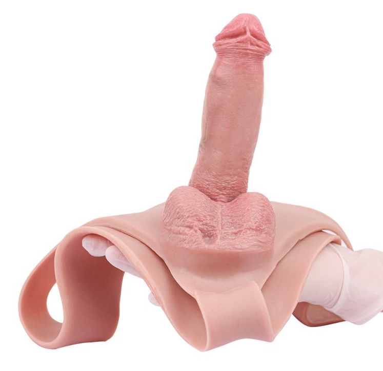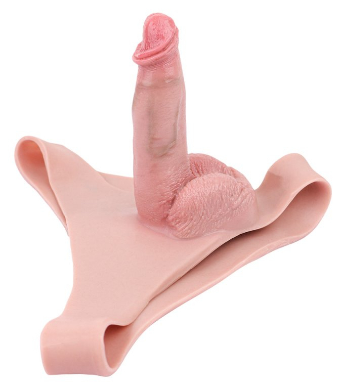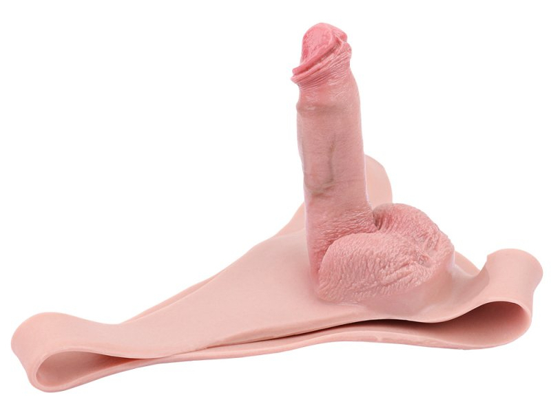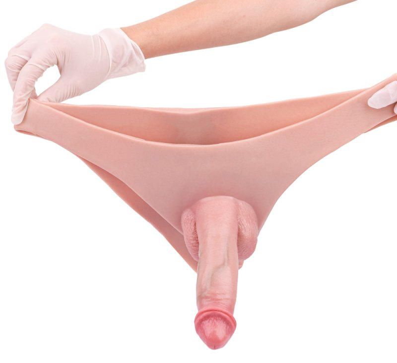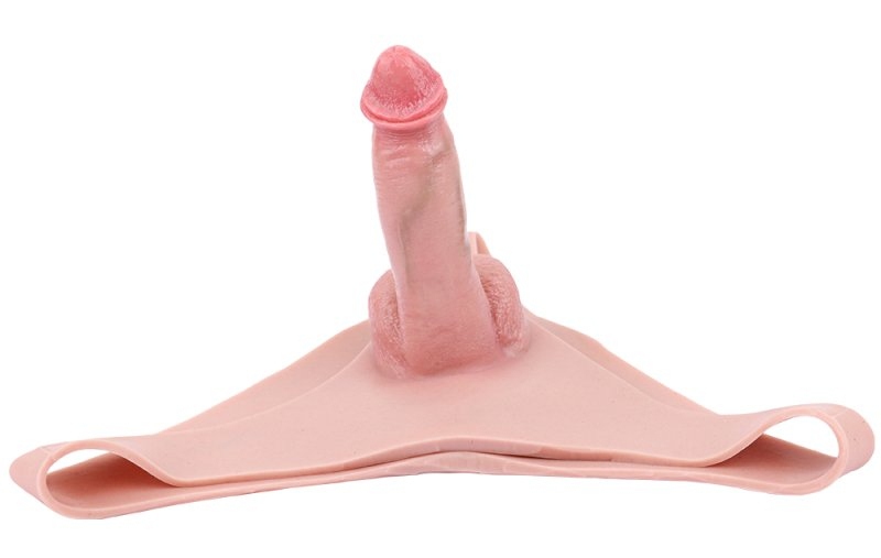 Gode ceinture creux avec tour de taille max de 72 cm.Longueur insérable de 13 cm et largeur de 4 cm et gaine de 10 cm de long et 2.5 cm de large.Gland décalotté et des bourses.En silicone.