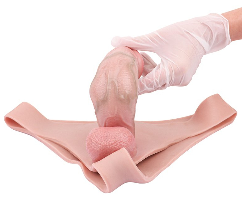 Gode ceinture creux, à la surface texturée avec bourses rondes.Longueur insérable de 20 cm pour une largeur de 4 à 5 cm.Gaine de 12 cm de long pour 3 cm de large.Tour de taille max de 72 cm.En silicone.