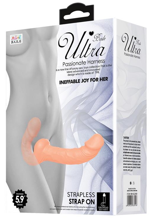 Le gode ceinture Ultra Passion est conçu sans harnais. Il est composé de deux godes avec les dimensions suivantes : gode extérieur 14 x 3.3cm gode intérieur 8 x 3.8cm. Accessoire idéal pour des moments coquins à deux. En PVC