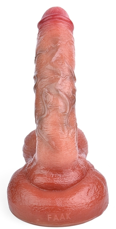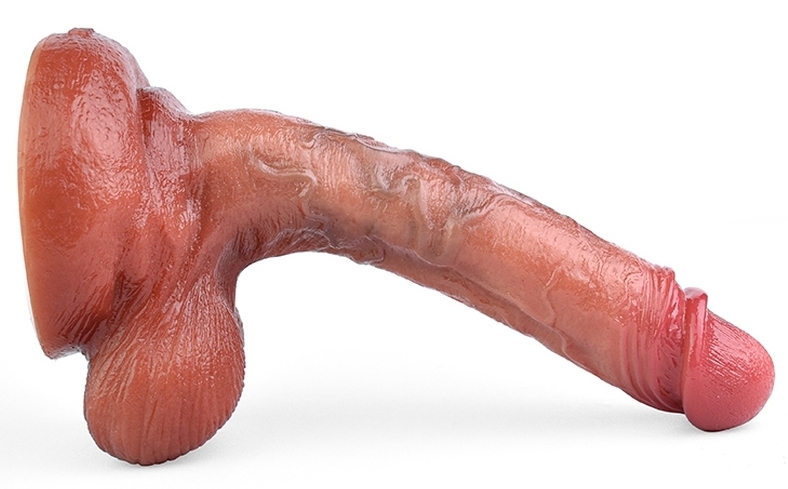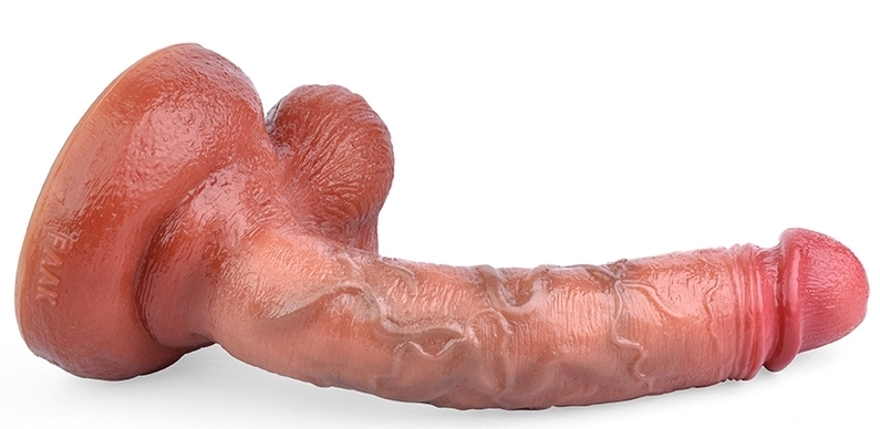 Gode à la forme courbe et à la surface texturée. Longueur insérable de 16 cm et largeur de 3.6 cm. En silicone, avec une base ventouse.