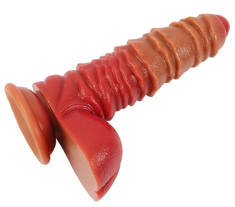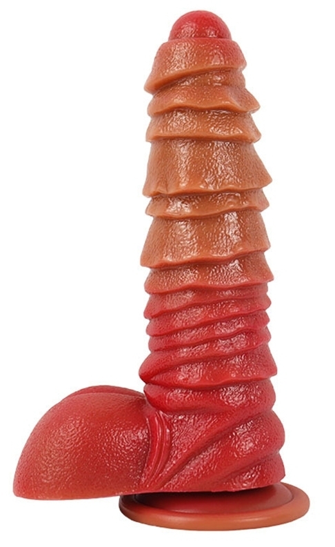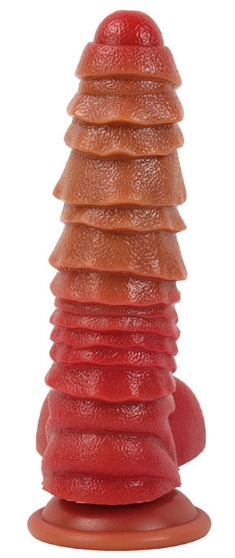 Gode, à la forme stimulante, muni d’une base ventouse. Longueur insérable de 15 cm et largeur de 2.5 à 5.2 cm En silicone.