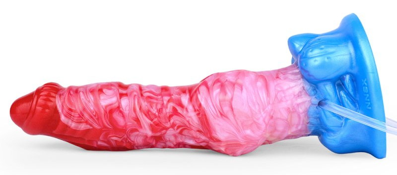 Gode éjaculateur et gonflable de 6 à 9 cm. Longueur insérable de 18 cm.Seringue de 100 ml et poire pour la projectionEn silicone rose et blanc, avec base ventouse bleue.