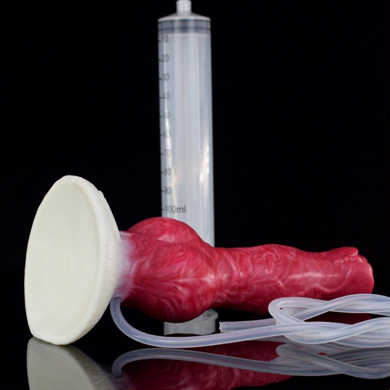 Ce gode éjaculateur Fuxar est un sextoy conçu avec une forme de sexe animalier. Il assure des sensations excitantes grâce à cette forme, aux dimensions et au système de projection d’eau ou autre liquide qui imite une éjaculation. La longueur insérable est de 18cm. La largeur va de 3.5 à 6cm. Avec la seringue de 100ml et la poire pour une utilisation facile. Il est fabriqué en silicone souple