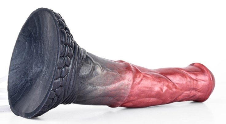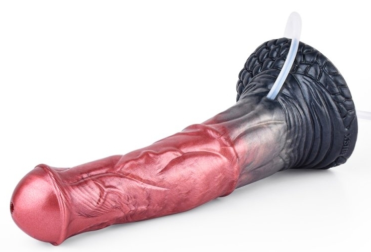 Gode avec une forme de sexe de cheval avec une base ventouse. Longueur insérable de 19 cm pour une largeur de 3.5 à 5 cm. Seringue de 100 ml et poire de 30 ml. En silicone
